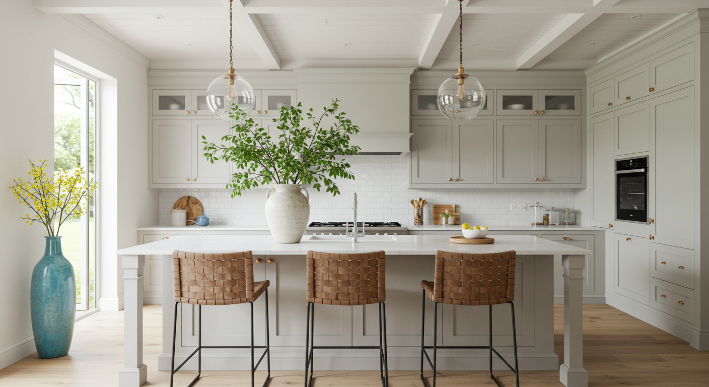 Your kitchen table is your opportunity to bring in some color and make the room feel cozy. Decorate it with fresh flowers as a centerpiece, or use cloth place settings to warm the area up.
