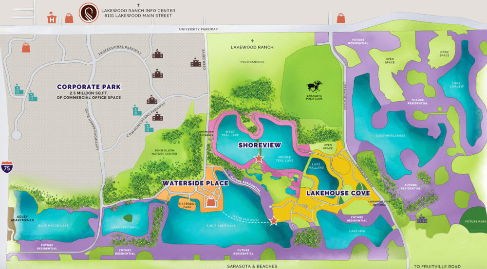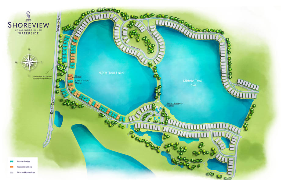 Waterside homes for sale are nestled within a master-planned community of single-family homes consisting of two neighborhoods, Lakehouse Cove and Shoreview.