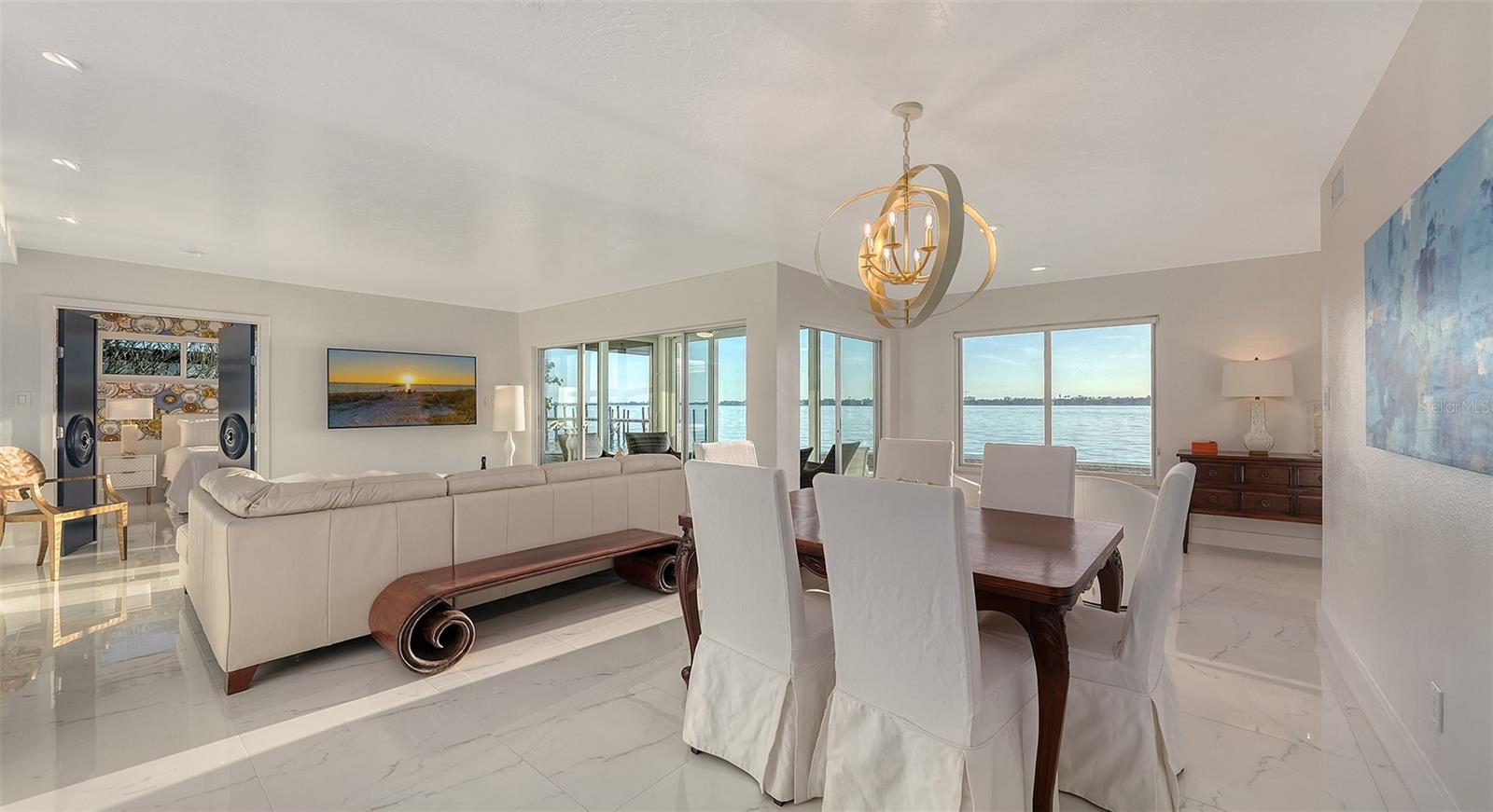 Welcome to a refined waterfront haven in the coveted Bay Point community on Golden Gate Point, where every detail of this beautiful, completely renovated 2BR/2BA, 1,693-sq.-ft. residence has been thoughtfully curated for an elegant lifestyle by Sarasota Bay. The expansive layout is enhanced by gleaming Italian polished Porcelain tile floors, ceilings accented with recessed lighting and an abundance of natural light streaming through walls of glass that frame picture-perfect sunsets, sweeping views of the bay, the barrier islands and the iconic Ringling Bridge with its twinkling night lights. The modern kitchen is exceptional, featuring all-white cabinetry paired with matching Pompeii quartz countertops, a striking Italian Terra Bella Wave Tangerine backsplash and premium stainless-steel appliances, complemented by a large walk-in pantry and an adjacent dining area--ideal for enjoying meals with panoramic views. Both bedrooms serve as luxurious retreats, each with its own en suite bath and generous custom-fitted walk-in closets, while a dedicated laundry room and walk-in pantry & storage adds convenience. From your covered parking space, you have direct access to the residence through the private entry door, creating the ease of single-family home living, continuing outdoors, through a glass-enclosed lanai that leads to a private rear waterfront paver deck. Enjoy an unparalleled vantage point and savor stunning sunsets and the gentle rhythm of the water. New A/C, water heater, in-home alarm system, customized window coverings and high-end ceiling fixtures. Located just moments from downtown Sarasota's dining, shopping and cultural attractions--and a short drive from St. Armands and barrier island beaches--Bay Point provides access to exclusive amenities such as a gated entry, day dock, heated bayfront pool and a secure seawall. Furnishings are available separate from the real estate.